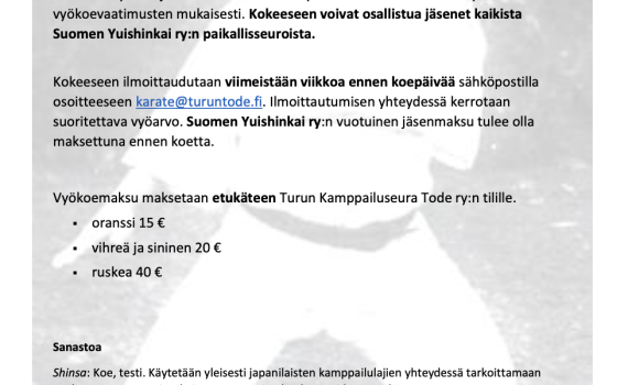 Karaten kyu-arvojen vyökoe 9.5.2026