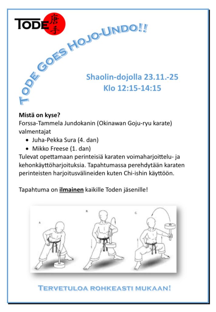 Ilmainen Hojo-undo -treenipäivä kaikille Toden jäsenille 23.11.-25