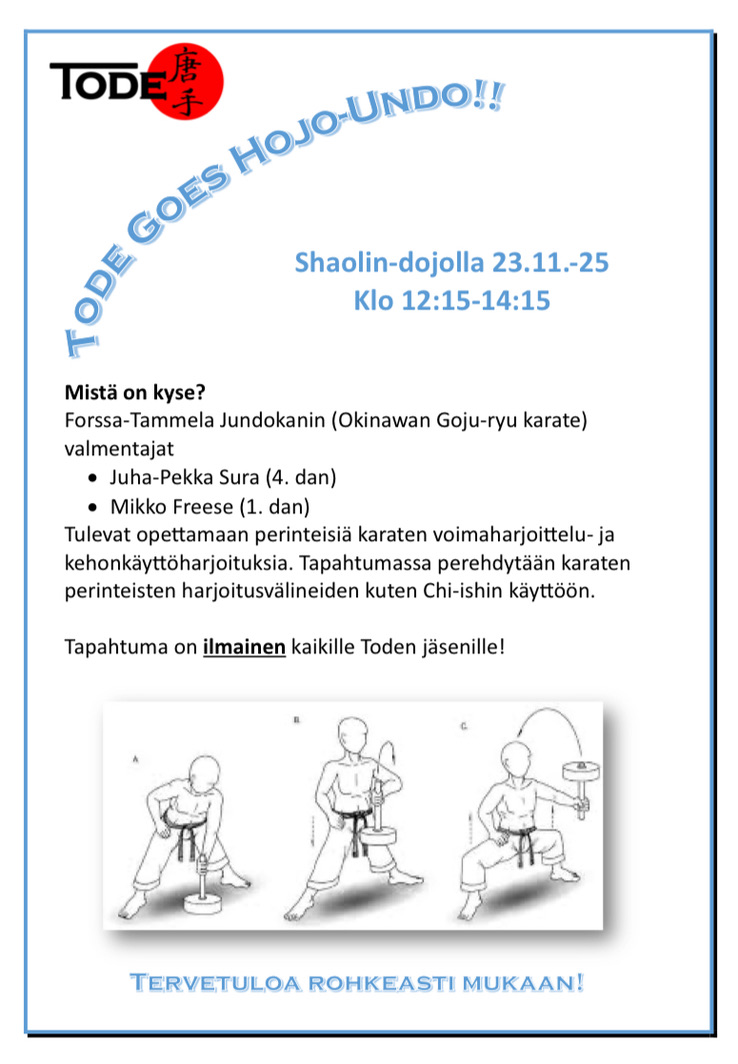 Lisätiedot ja ilmoittautumiset: kobudo@turuntode.fi, www.turuntode.fi