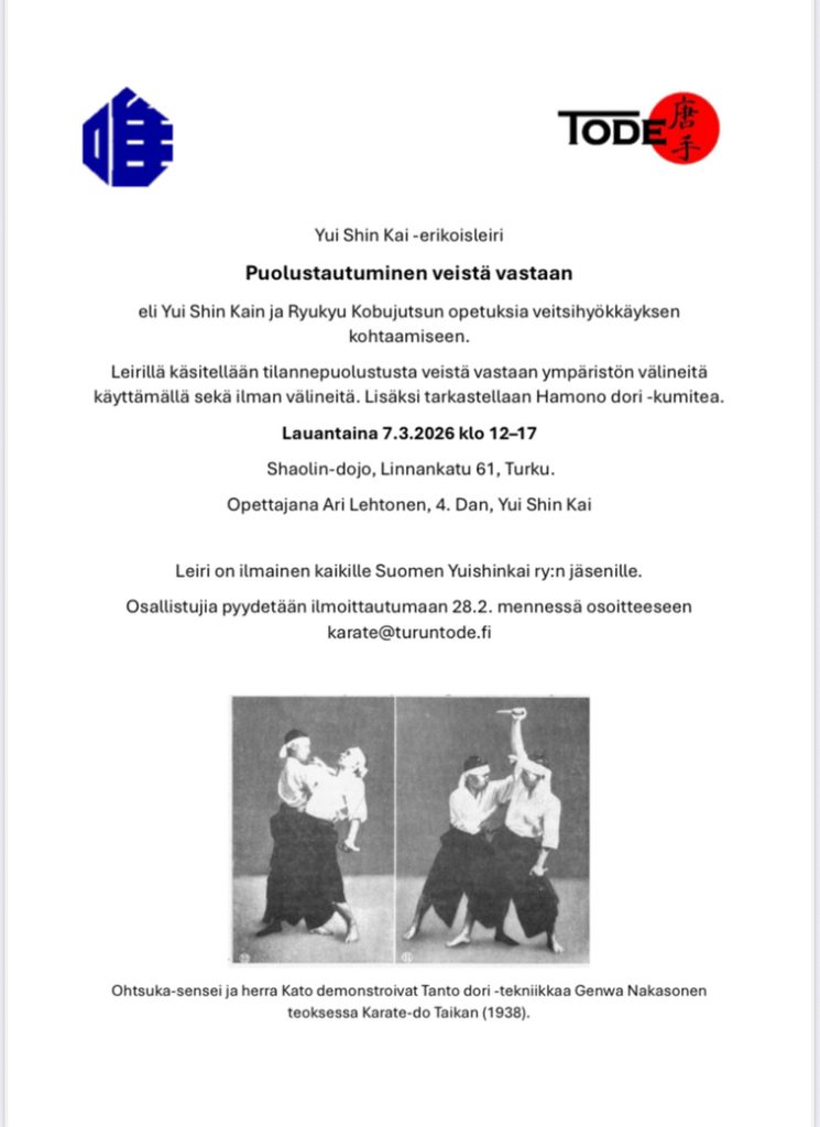 Paikka: Shaolin-dojo, Linnankatu 61, Turku Harjoitusajat: Lauantaina ja sunnuntaina klo 12.00 – 13.30 ja 14.00 – 15.30. Ohjelma: Tai chin lyhyt liikesarja. […]